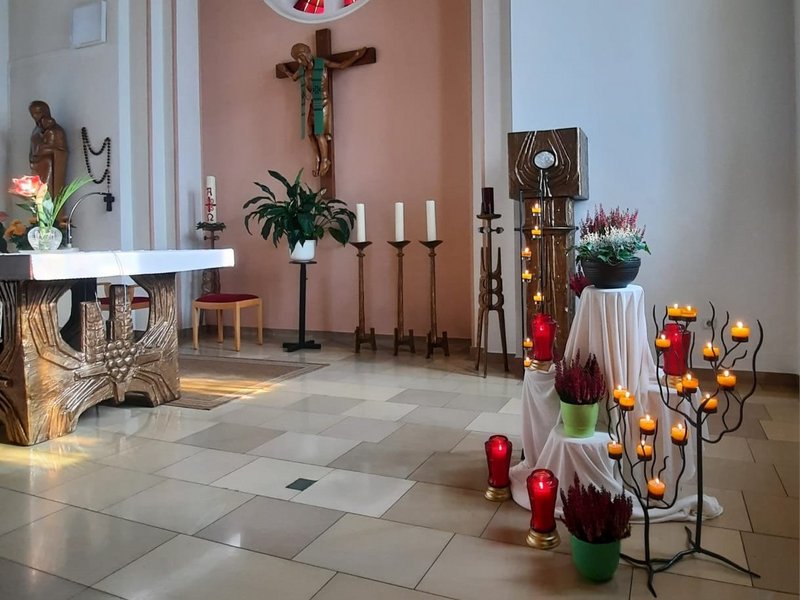Am Allerheiligentag haben wir in unserer Einrichtung innegehalten, um gemeinsam an alle Verstorbenen zu denken, die Teil unseres Lebens und unserer Gemeinschaft waren. In einer feierlichen Messe kamen Bewohnerinnen und Bewohner, Angehörige und Mitarbeitende zusammen. Es wurde gebetet, Kerzen wurden entzündet, und in einer Atmosphäre stiller Verbundenheit entstanden viele Augenblicke des Erinnerns. Die Nennung der Namen der Verstorbenen und das Aussprechen persönlicher Gedanken gaben Raum für Trost, Dankbarkeit und liebevolle Rückschau. Solche Momente sind wichtig – sie geben Halt, schaffen Nähe und zeigen, dass niemand vergessen ist.