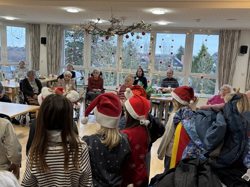 Die Klasse 3b der Kardinal-von-Galen-Schule sorgte im St. Josefshaus für eine besondere Adventsüberraschung: Mit roten Weihnachtsmützen besuchten die Schülerinnen und Schüler die Seniorinnen und Senioren. In zwei Gruppen lasen sie Geschichten vor, trugen Gedichte vor und sangen Adventslieder. Gemeinsam wurde über das Weihnachtsfest gesprochen und „Oh Tannenbaum“ angestimmt. Begleitet von ihren Klassenlehrkräften brachten die Kinder viel adventliche Stimmung und Freude ins Haus. Einige der Seniorinnen und Senioren zeigten sich sichtlich gerührt. Zum Abschied kündigten die Kinder schmunzelnd an: Sie kommen wieder.