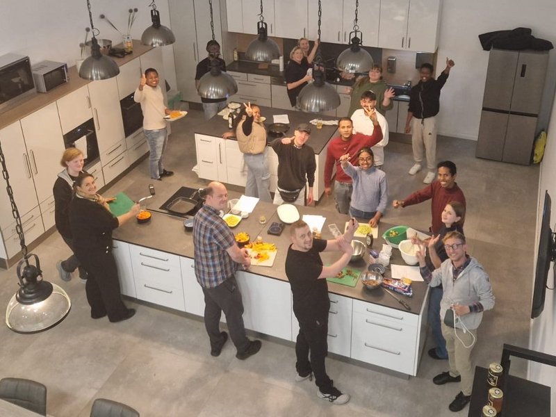 Ziel des Tages war es, jungen Menschen die Möglichkeit zu geben, unsere Arbeit kennenzulernen, Fragen zu stellen und sich mit Bewohnern und Mitarbeitenden auszutauschen. Nach einer kurzen Einführung ging es direkt in die Praxis: Im Eventraum wurde gemeinsam gekocht! Die Schülerinnen und Schüler packten fleißig mit an, schnitten Gemüse, bereiteten leckere Gerichte zu und lernten dabei nicht nur kulinarische Tricks, sondern auch, wie wichtig Teamarbeit und Kommunikation sind.