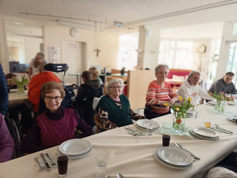 Zur Feier des Tages wurde ein besonders leckeres Mittagessen für alle Bewohnerinnen und Bewohner zubereitet. In gemütlicher Atmosphäre kamen wir in der Eingangshalle zusammen, um zu essen, zu lachen und den besonderen Tag miteinander zu teilen. Das gemeinsame Essen steht sinnbildlich für das Miteinander, das in unserem Haus einen hohen Stellenwert hat – ganz im Sinne des heiligen Josef, der als Beschützer der Familie gilt und für Bescheidenheit und Zuverlässigkeit steht.