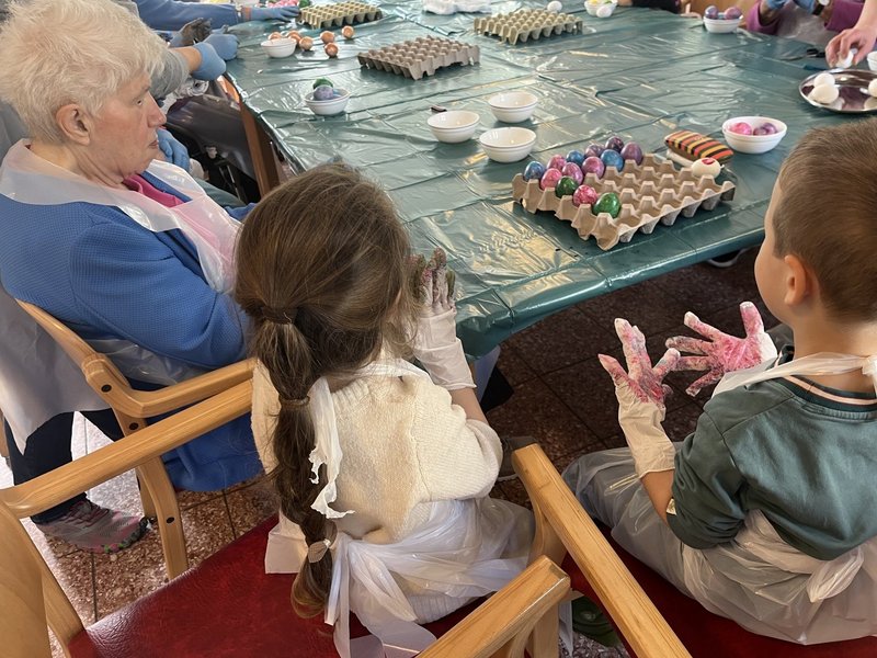 Am Donnerstag wurde es bunt: Zusammen mit den Kindern des Kindergartens Kinderland gestalteten unsere Bewohnerinnen und Bewohner farbenfrohe Ostereier. Die Junge Pflege startete den Tag mit einem gemeinsamen Frühstück im Café, bevor der Nachmittag entspannt ausklang.